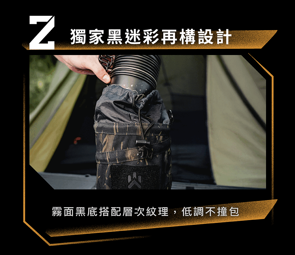 ▸ 獨家設計|黑迷彩紋理再構,打造獨家風格