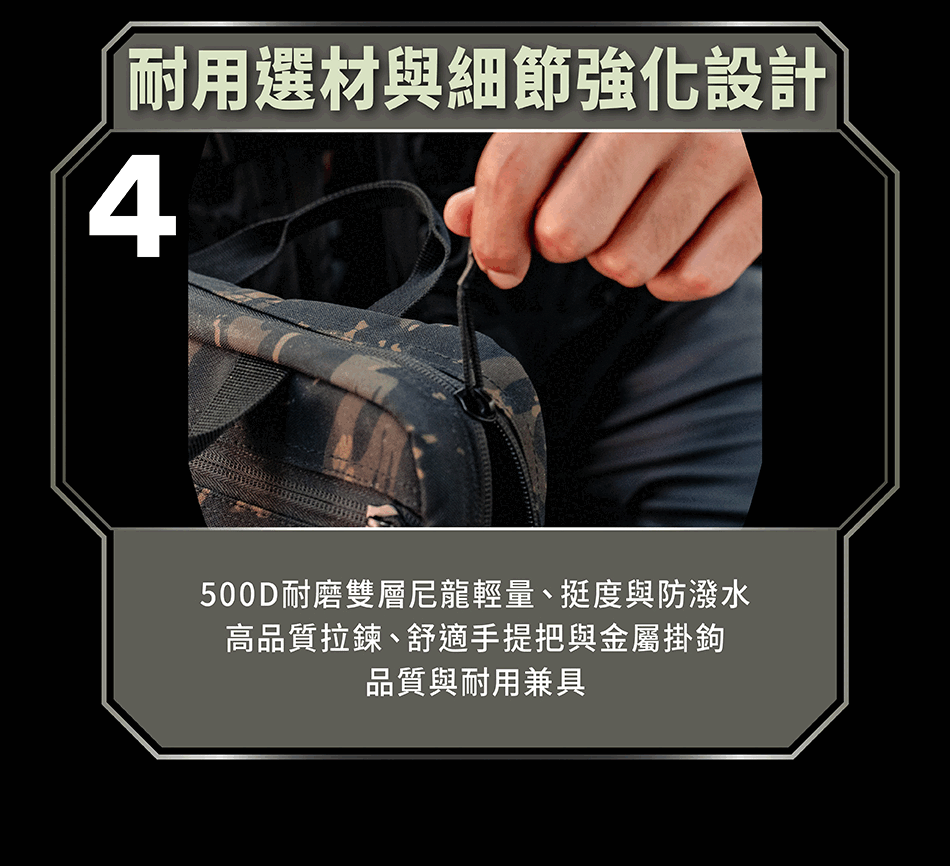 ▸ 輕巧耐磨|500D尼龍兼具耐用與重量減輕