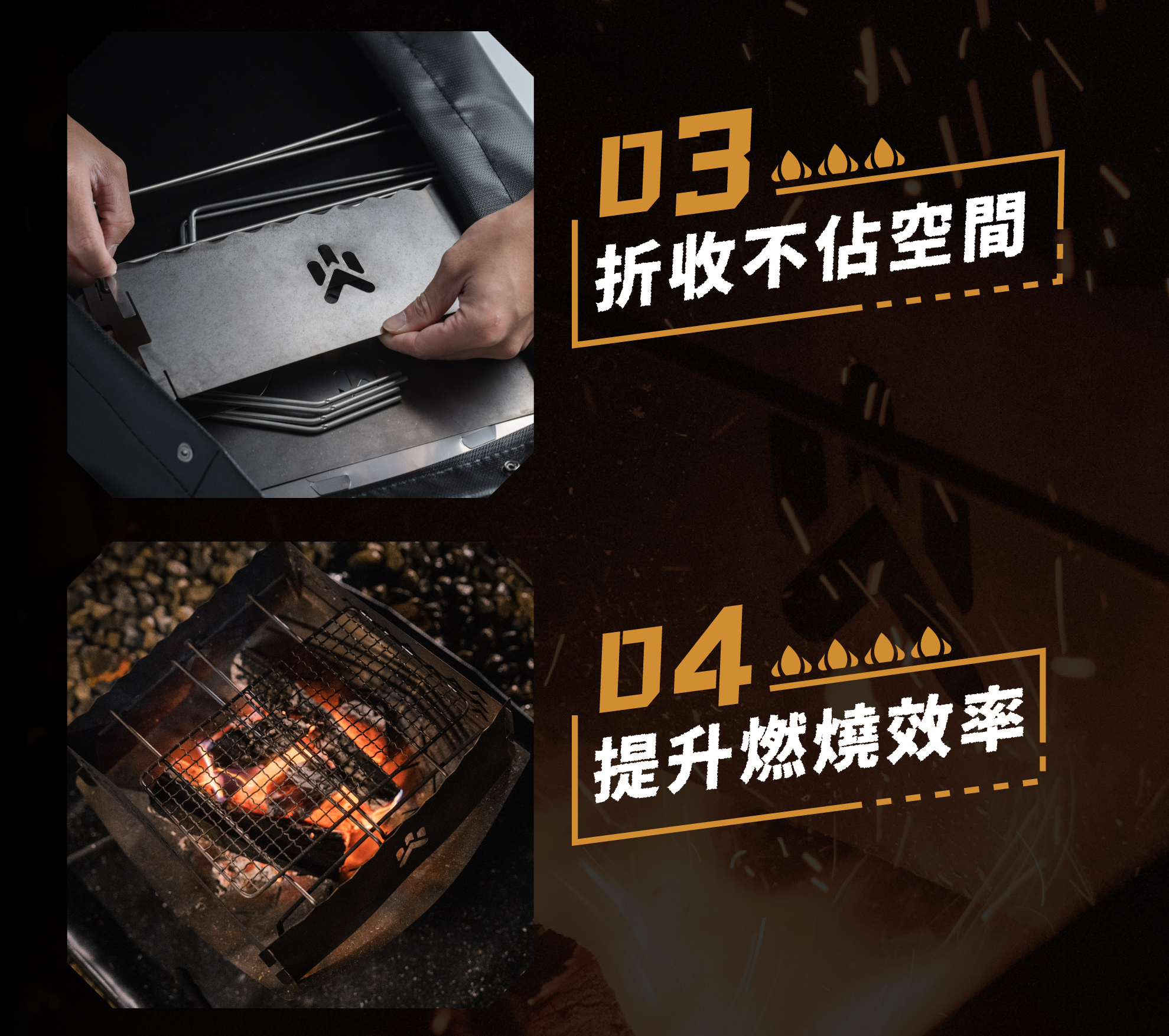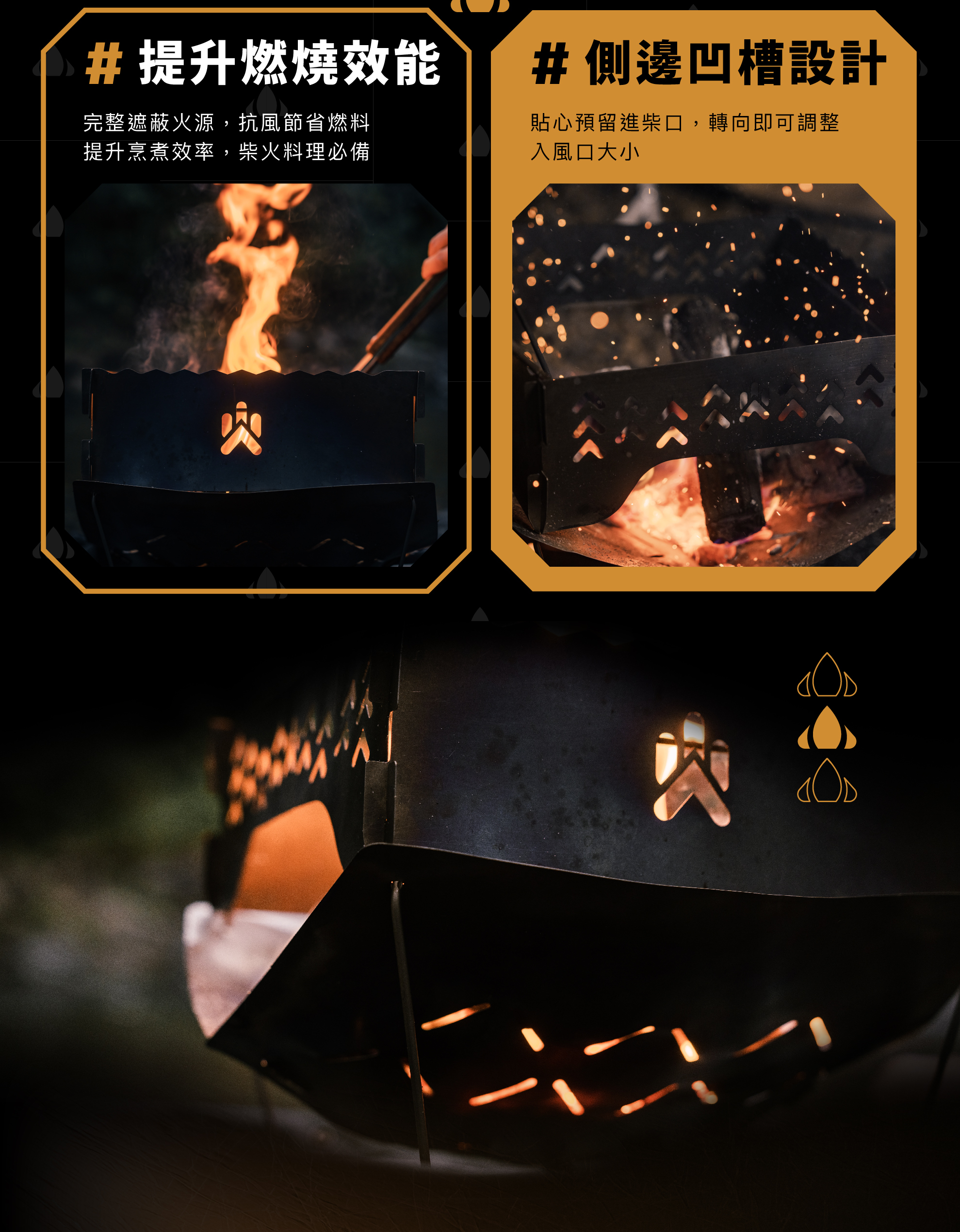 側邊凹槽設計|貼心預留進柴口,調整火力更方便