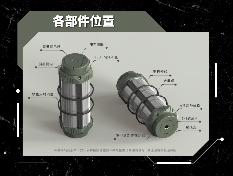 |本產品標配無提供18650電池,可至3C電子通路/主流網購平台/部分露營用品店購買