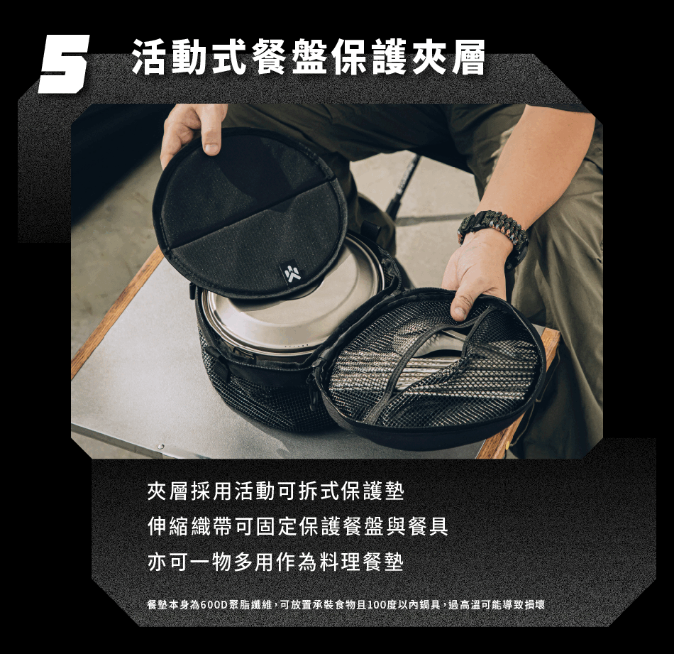 防水夾層|透氣網可放醬料餐具等多用途收納
