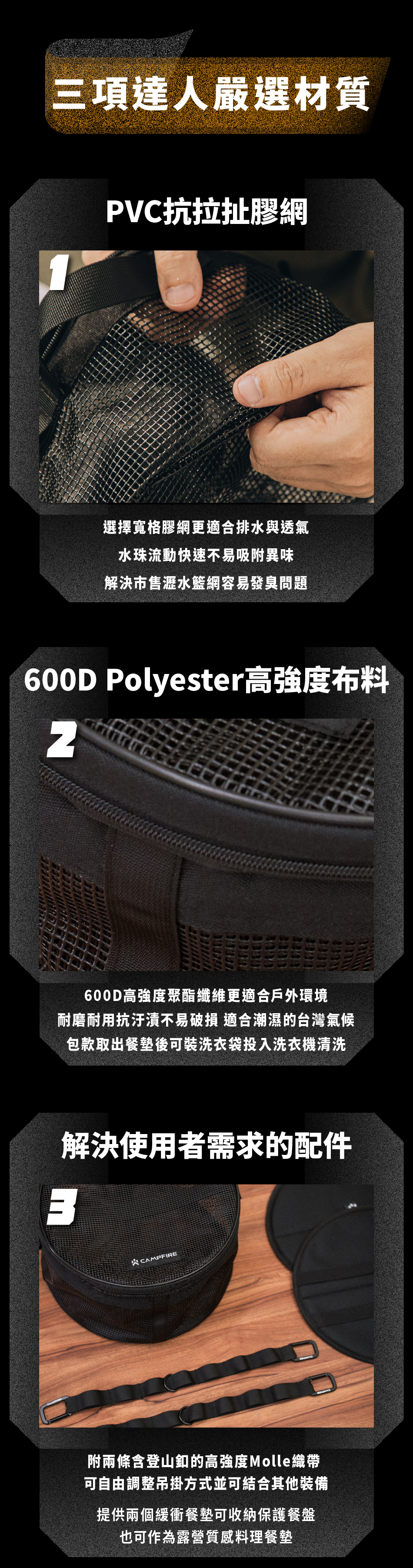防水夾層|透氣網可放醬料餐具等多用途收納