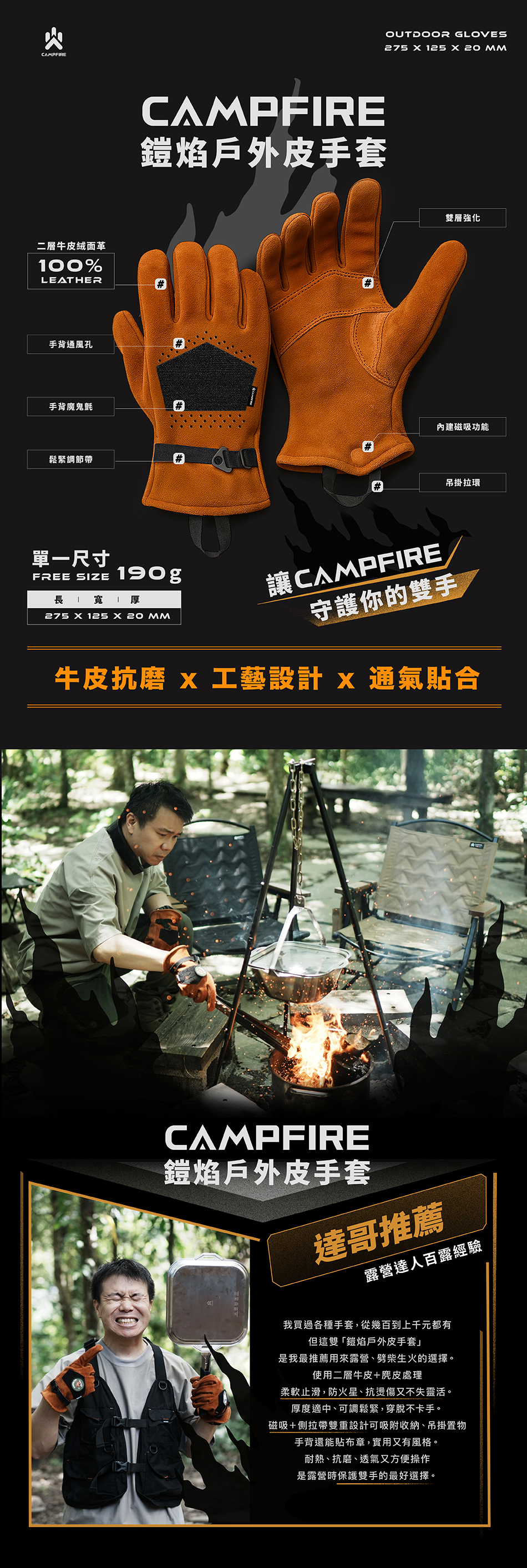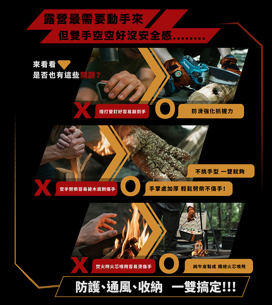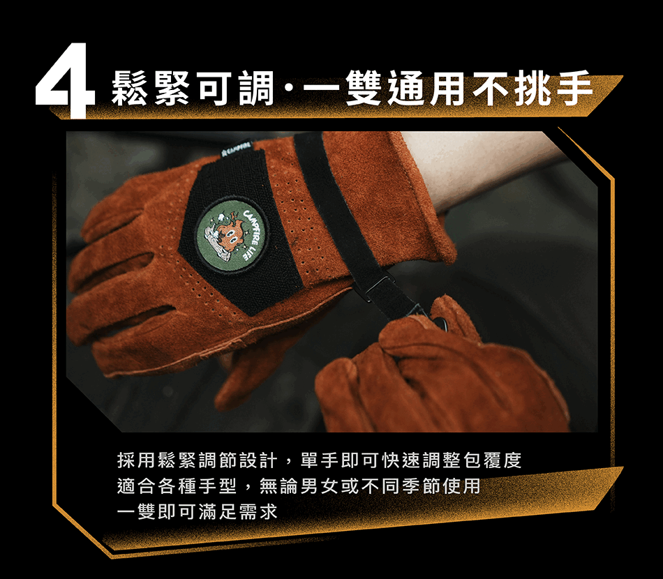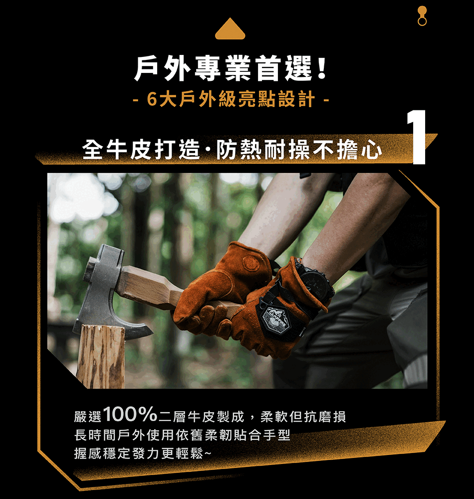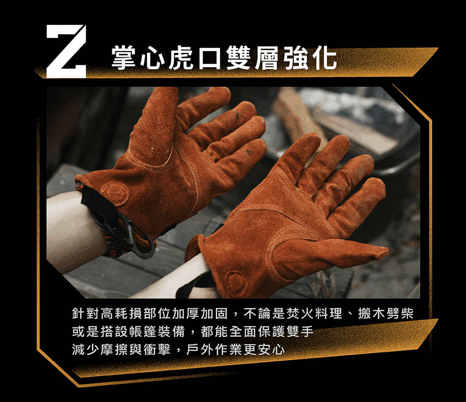 ▸ 強化耐磨|握持處加厚,搬柴移鍋更耐操
