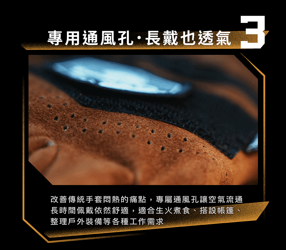 ▸ 舒適透氣|手背通風孔,長時間配戴也不悶熱